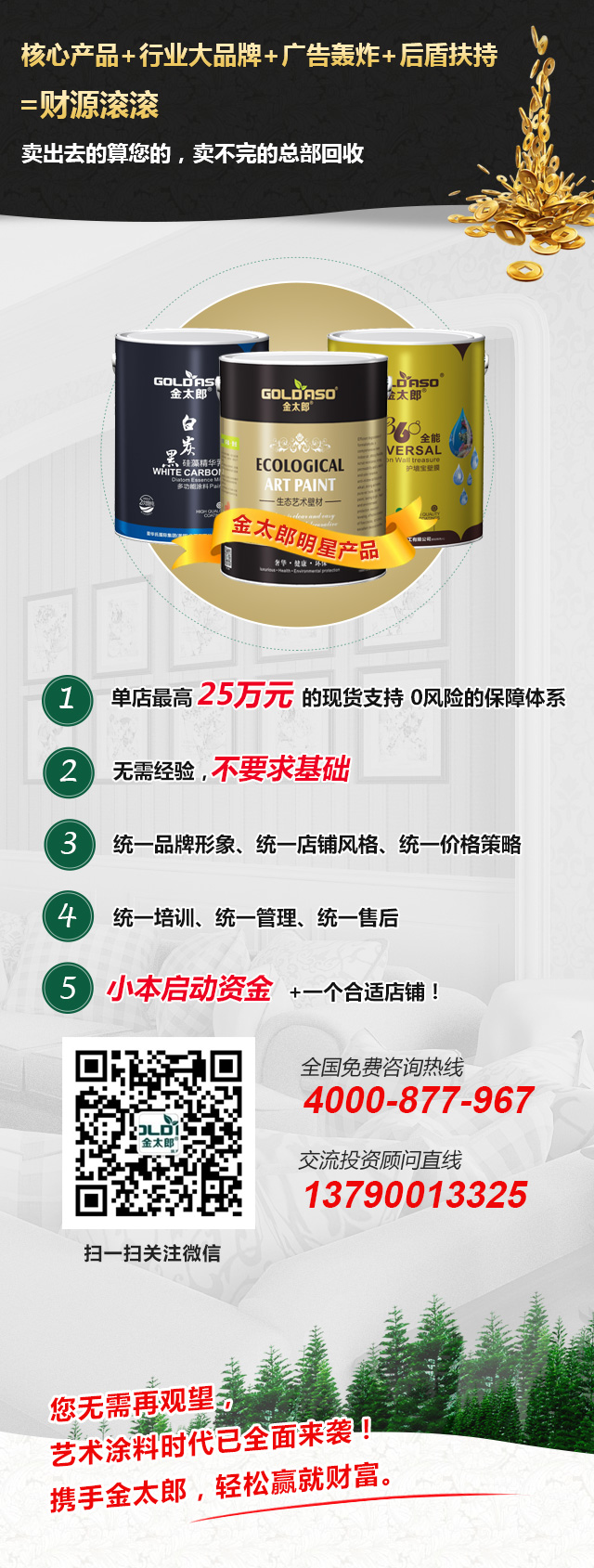 金太郎的硅藻泥系列、白炭黑系列、艺术涂料系列、无机矿物涂料系列、四大系列产品总能让你在家庭的装饰项目中,总能让你发现带来新利润的亮点。